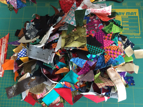 Bei meinen Patchworkarbeiten fallen immer jede Menge kleine und kleinste Reste an, die viel zu schade zum Wegwerfen sind. Hier ist ein kleiner Teil aus meiner „Sammlung“.