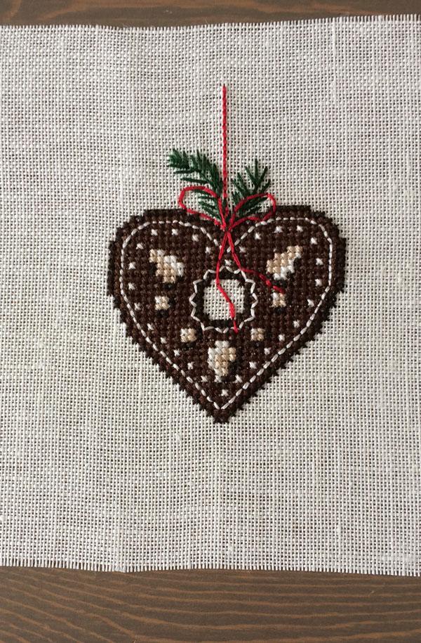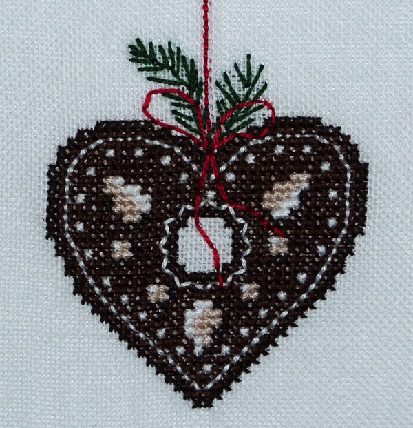 Das Lebkuchenherz habe ich im Sommer 2017 nach Zählmuster zweifädig im Kreuzstich gestickt.