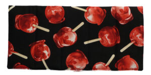 Das Liebesäpfelmotiv ist der Außenstoff, das Notenblattmotiv und die Klaviertasten sind der Innenstoff.
