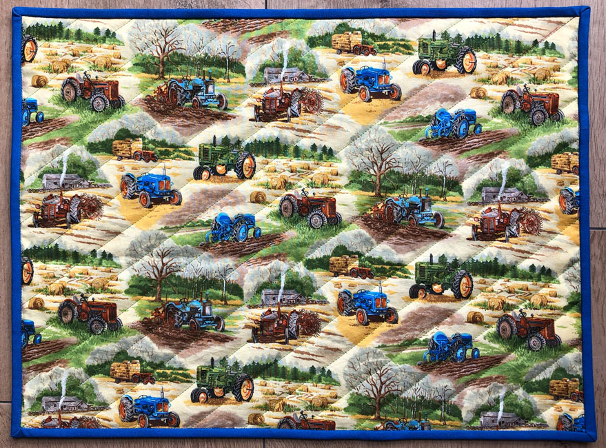 Das Tischset habe ich im November 2022 für einen Jugendlichen genäht, der eine Ausbildung zum Landwirt absolviert. Das Tischset ist beidseitig verwendbar.